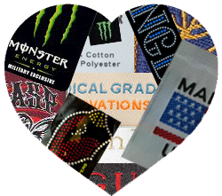 We offer low minimum quantity orders, sampling included, NO CHARGE shipping. Custom Clothing Labels include woven labels, printed labels, ahesive clothing labels, and Embroidered Patches.